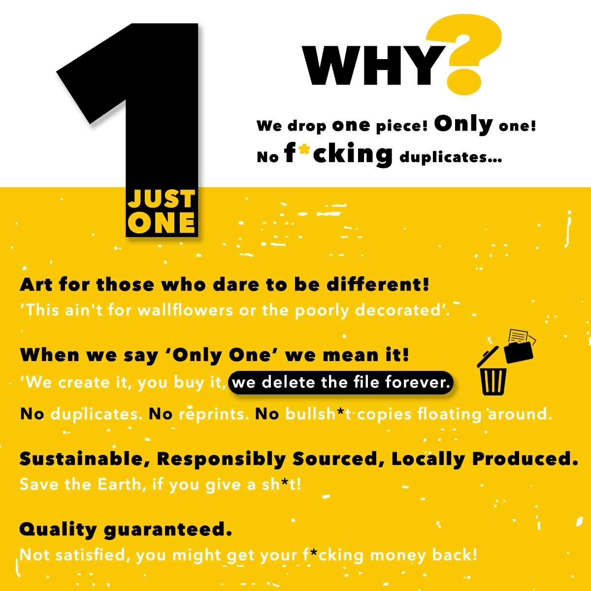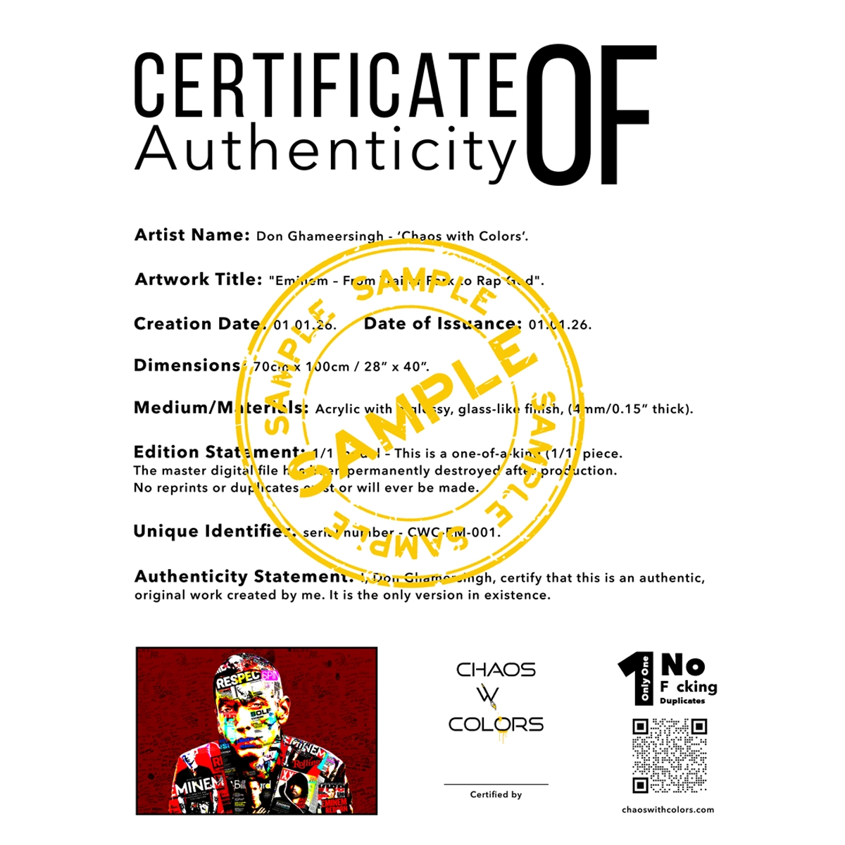 Available in four sizes, File destroyed after production. Certificate of Authenticity included.Chaos with Colors – because conformity can go f*ck itself.