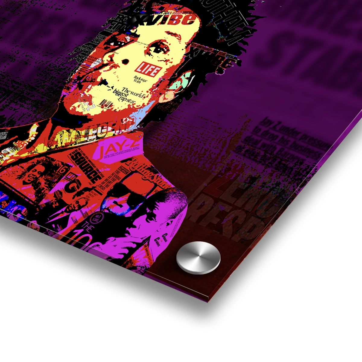 Every “Reasonable Doubt” bar, every Roc-A-Fella hustle, every “I’m not a businessman, I’m a business, man” truth — ripped from real headlines, lyrics, deals, and that unbreakable grind, then cut, pasted, and exploded across high-gloss acrylic. No mass-produced prints. No editions. No reprints. Ever.
