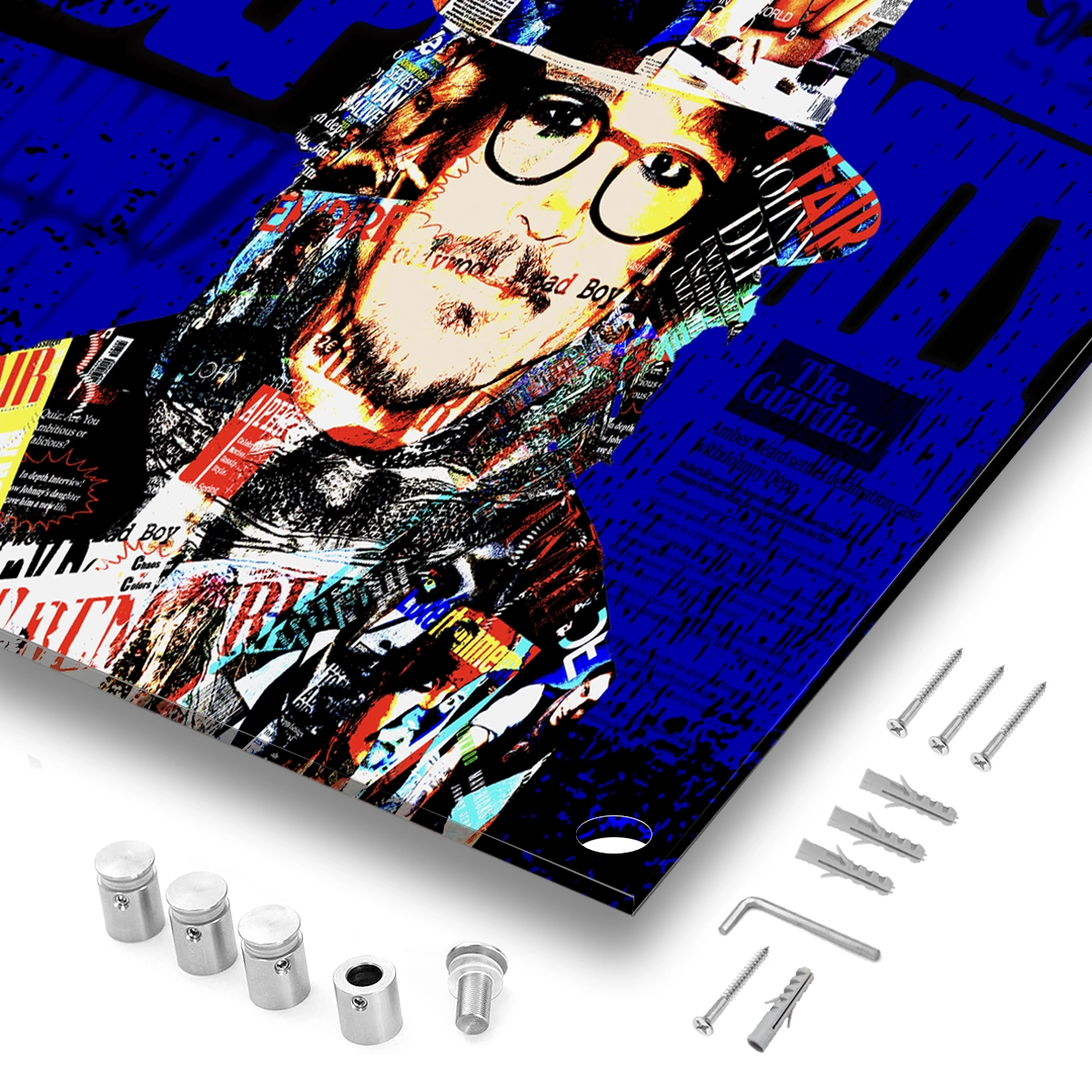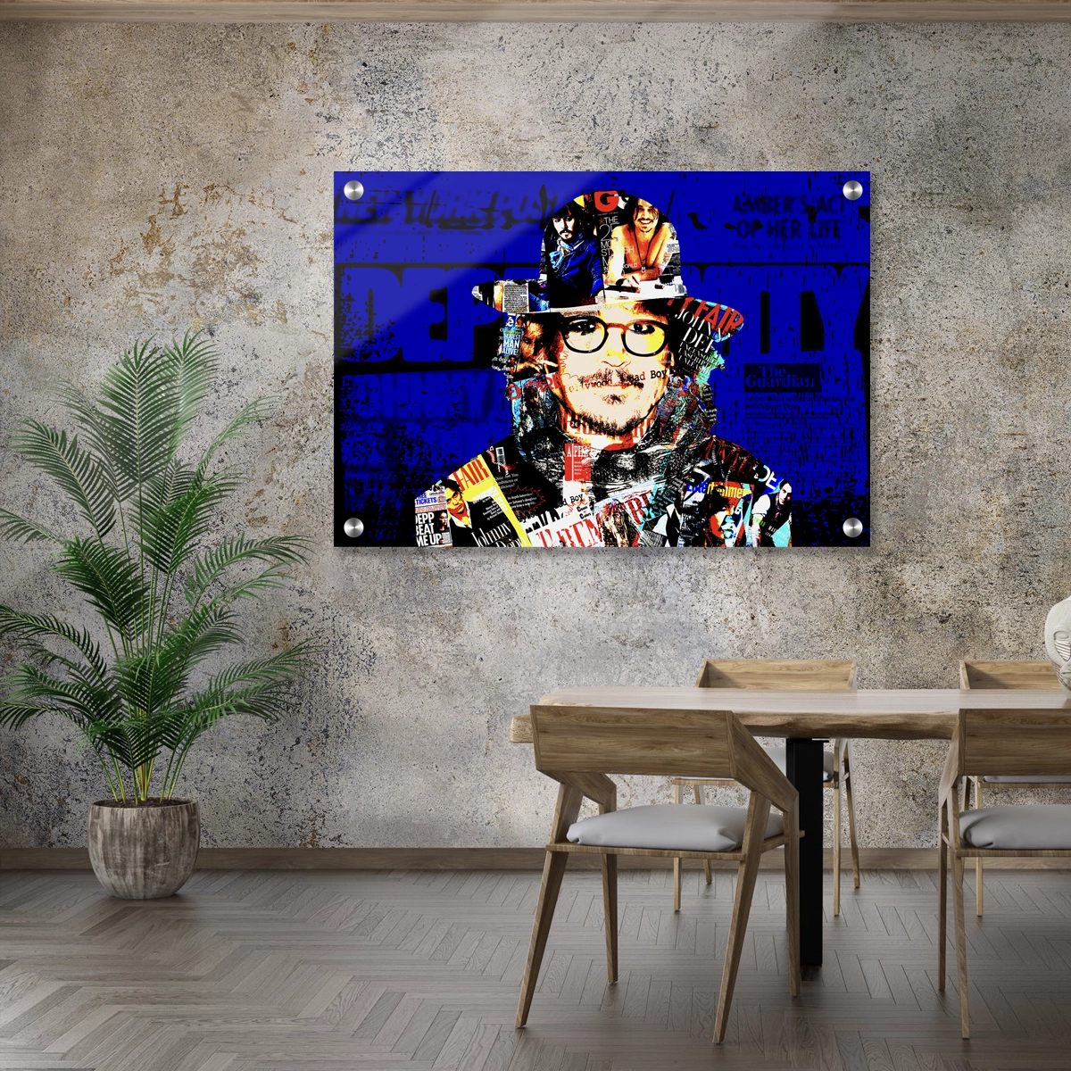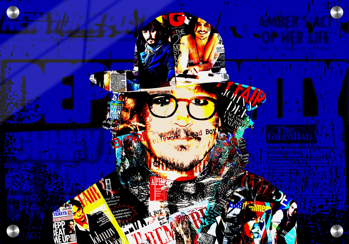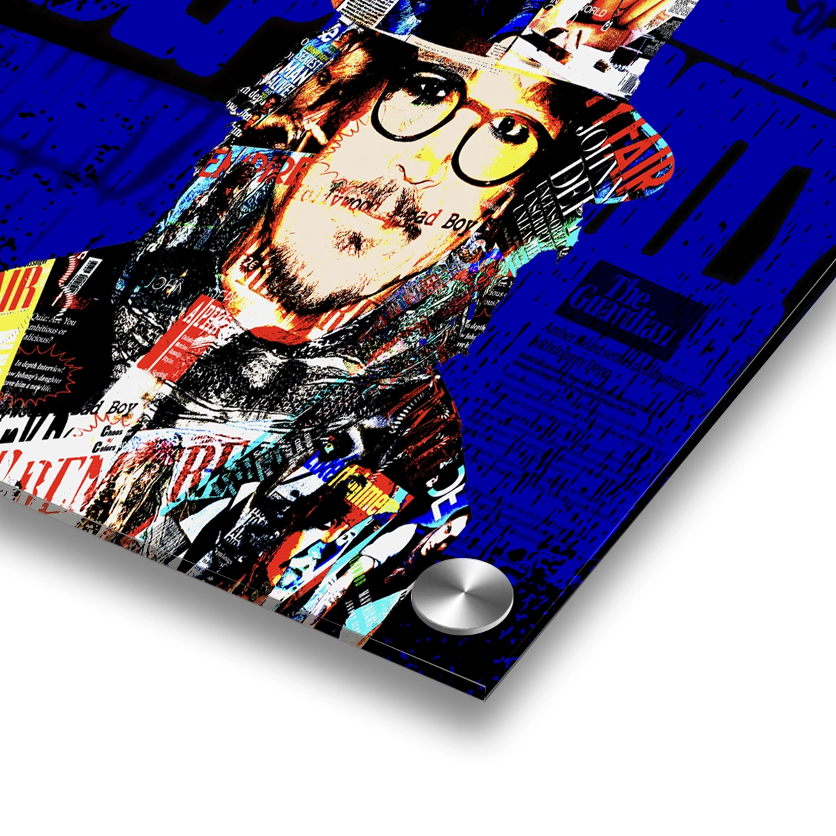 The only Johnny Depp acrylic pop art in existence. High school dropout musician to eccentric Hollywood icon blended into chaotic glory. File destroyed after sale. Own the singular piece.